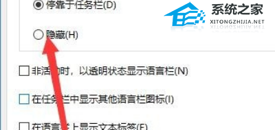 5、最后在弹出的“文本服务和输入语言”窗口里面将语言栏选择“隐藏”。这样,原来的样子又回来了。