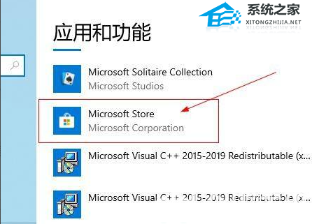 3、在应用和功能这里找一下看看有没有 Microsoft Store这个程序,如果没有看下面的,我说一下重新安装。