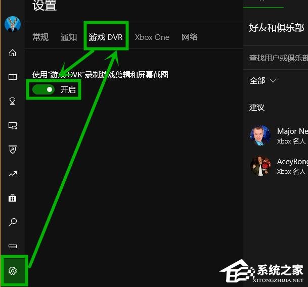 6、进入xbox——点击左下角设置——选择游戏DVR——把使用有DVR录制游戏剪辑和屏幕截图关闭。