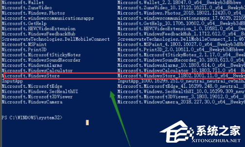 4、找到Microsoft.WindowsStore(应用商店)这个应用,然后复制右侧的名称。