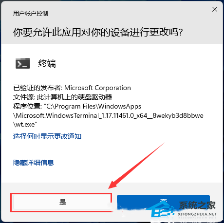 2、用户账户控制窗口,你要允许此应用对你的设备进行更改吗?点击【是】;