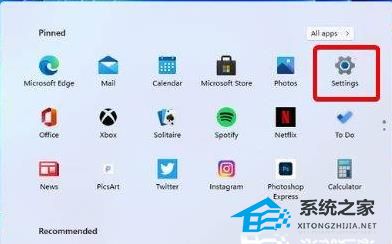 1. 首先点击下方任务栏的Windows图标,打开里面的设置。
