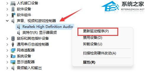 2. 检查设备管理器:按下Win+X键,然后选择 “设备管理器”,在设备管理器中展开 “音频输入和输出” 或 “声音、视频和游戏控制器”,确认是否有任何带有感叹号或问号的设备,如果是这样,右键点击该设备并选择 “更新驱动程序”。
