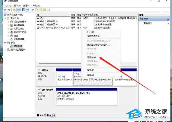 3. 选择要分区的C磁盘,打开“压缩卷”。