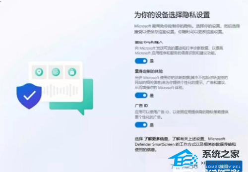 4. 在隐私设置屏幕上,根据个人喜好选择是否启用或禁用不同的隐私选项,完成设置后,点击下一步。