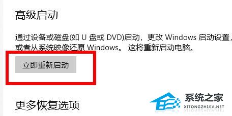 4. 进入恢复界面后,可以在右侧看到“高级启动”,点击下方的“立即重新启动”。