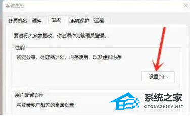 4. 进入高级系统设置后,在性能中选择“设置”。