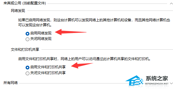 4. 随后将“网络发现”和“打印机共享”都启用并保存修改。