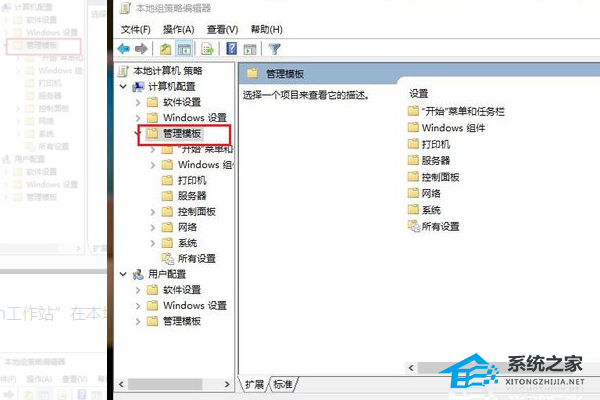 4、再在界面内找到“管理模板”选项并使用鼠标单击。