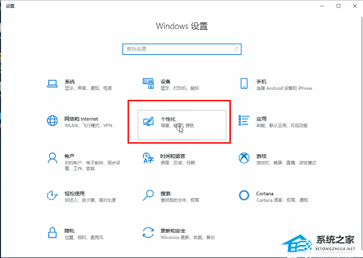 1、“win+i”快捷键进入“设置”界面,点击其中的“个性化”选项。