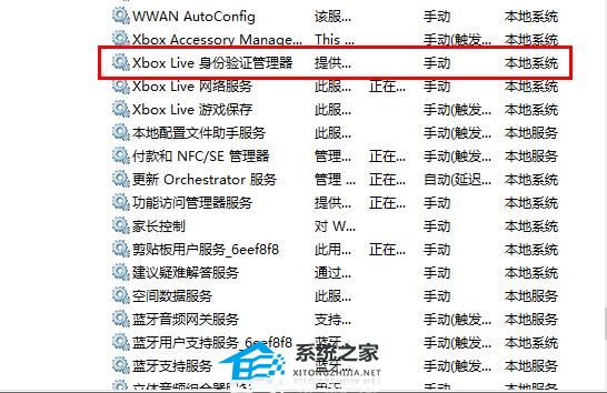 2、在打开的窗口界面中,找到“xbox live 身份验证管理器”双击打开。