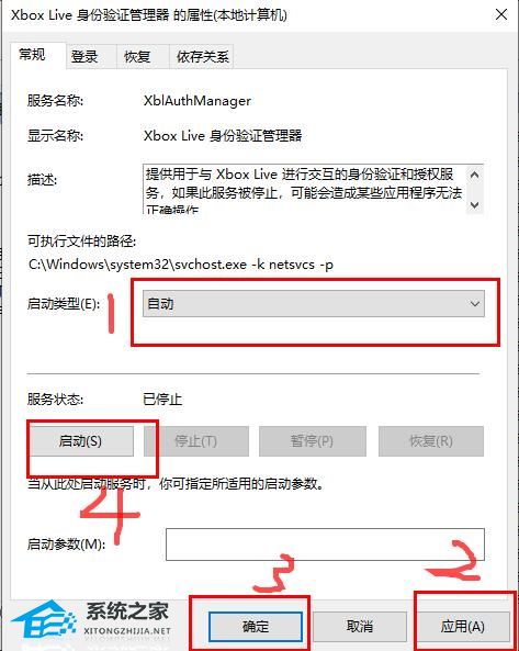 3、然后将“启动类型”改为“自动”,并点击“服务状态”下方中的“启动”按钮,最后点击应用确定即可。