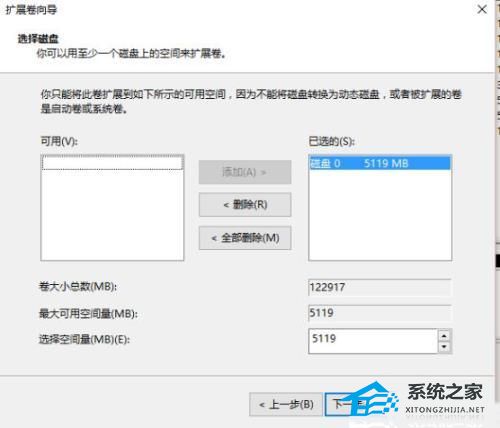 6、如上图,选择扩展到系统盘(C盘)即可,点下一步即可完成操作,至此我们就成功的调整好了C盘分区大小了。