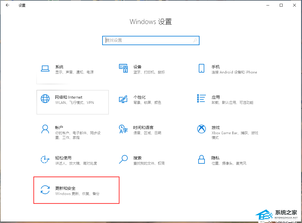 2、在设置面板中,我们可以找到并进入“更新和安全”。