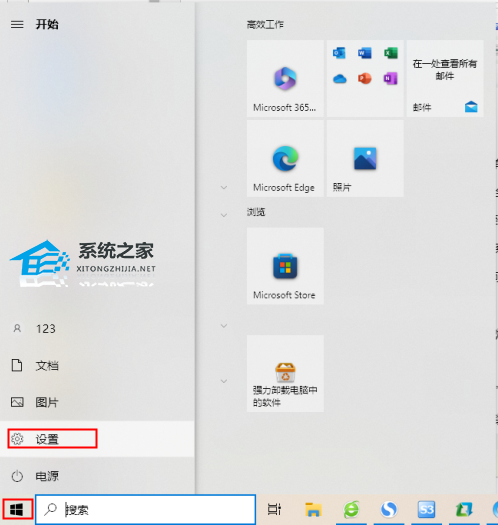 1、首先点击界面下方的windows图标打开开始菜单,在其中找到“设置”。