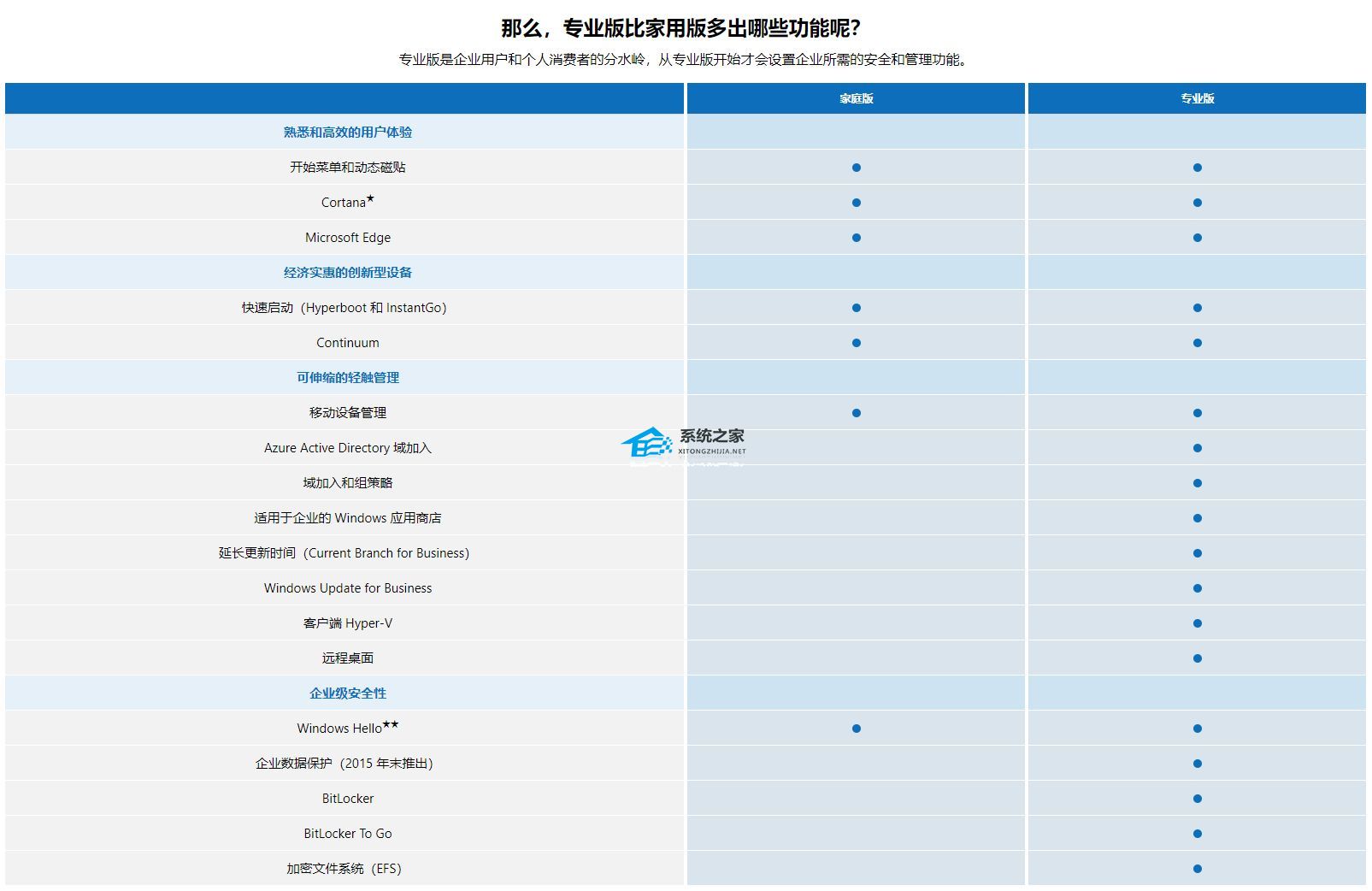 以上就是系统之家小编为你带来的关于“Win10专业版和家庭版哪个好?”的解决方法了,希望可以解决你的问题,感谢您的阅读,更多精彩内容请关注系统之家官网。