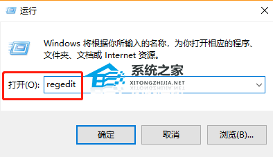 2、打开后正在运行程序的输入框中输入“regedit”,点击确认按钮。