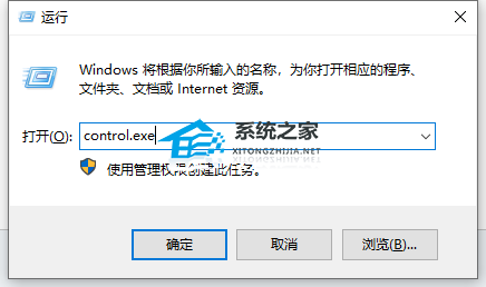 1、还是在键盘上按下“win+R”键即可快速打开运行菜单,然后输入“control.exe”回车即可打开控制面板。