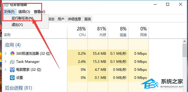 2、然后点击文件,再点击运行新任务。