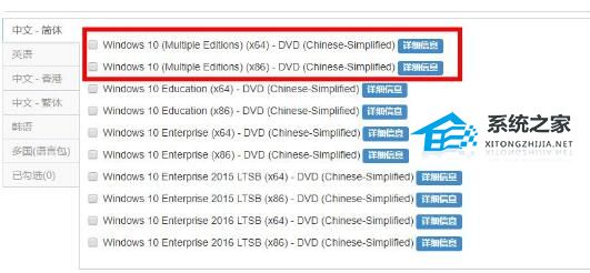 3、在里面找到“Windows 10 (Multiple Editions)”,这个就是家庭版的。