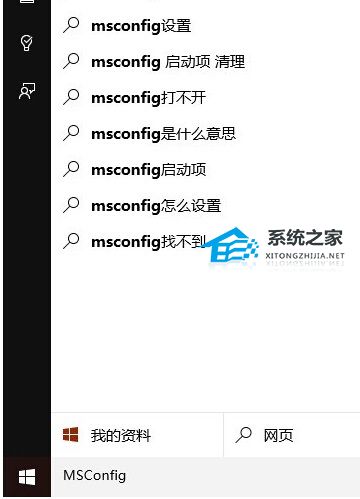 1. 在Cortana搜索栏输入msconfig后回车。