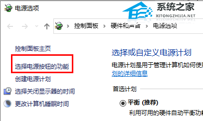 7. 进入电源设置后,在左边栏目上,找到“选择电源按钮的功能”。