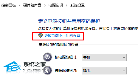 8. 然后点击上方的“更改当前不可用的设置”。