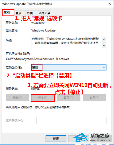若需要立即关闭Window 10自动更新(否则下次重启机器后再关闭),点击下方的【停止】。