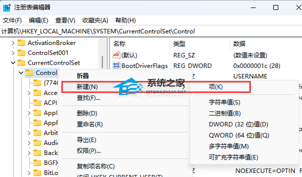 4. 【右键】点击【Control】,打开的菜单项中,选择【新建项】;