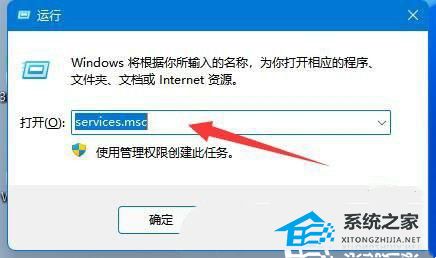 2. 在运行窗口,输入 Services.msc 命令,按确定或回车,打开服务。