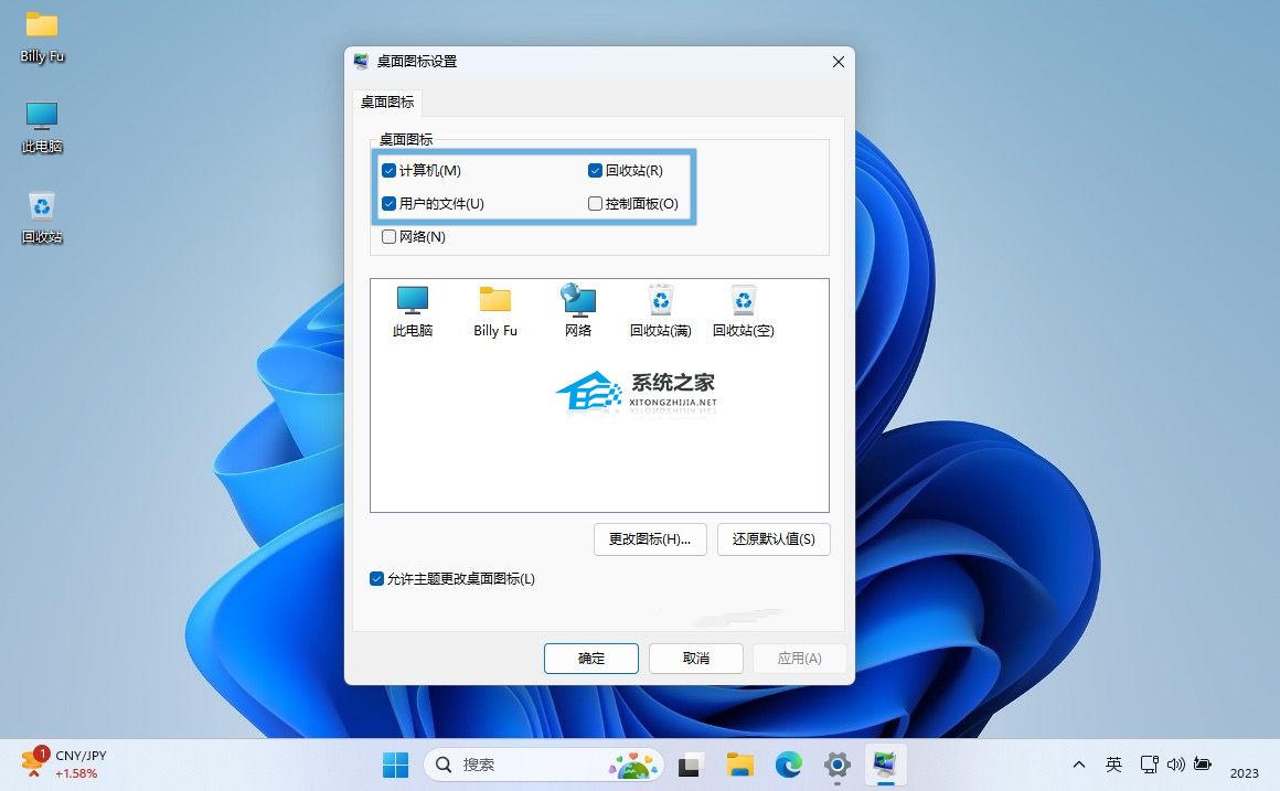 Win11隐藏桌面图标: