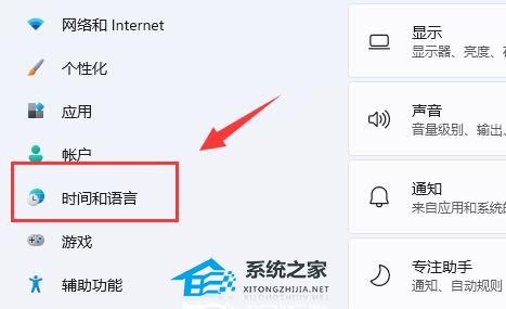 2. 接着点开左侧边栏中的“时间和语言”。