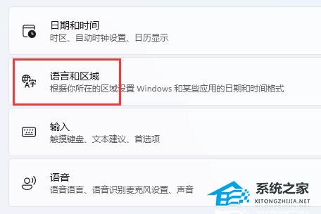 3. 再点击右边“语言和区域”选项。