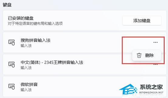 7. 在下方还可以添加或删除具体的键盘输入法。