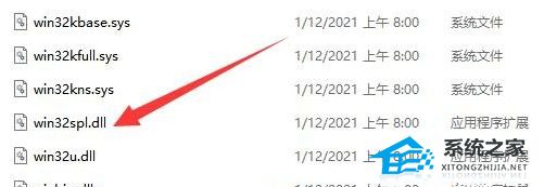 2. 找到【win32spl.dll】文件,将它备份到其他位置去。