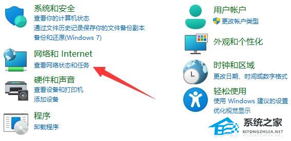 1. 打开“控制面板”,点击“查看网络状态和任务”。