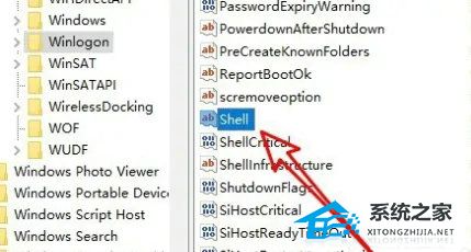 6. 接着在右侧的窗口中找到Shell的注册表键值。