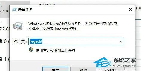 4. 打开的新建任务的窗口中输入命令Regedit。