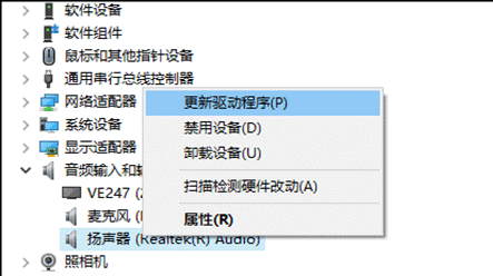 4. 右键点击声卡设备,选择“更新驱动程序”选项。