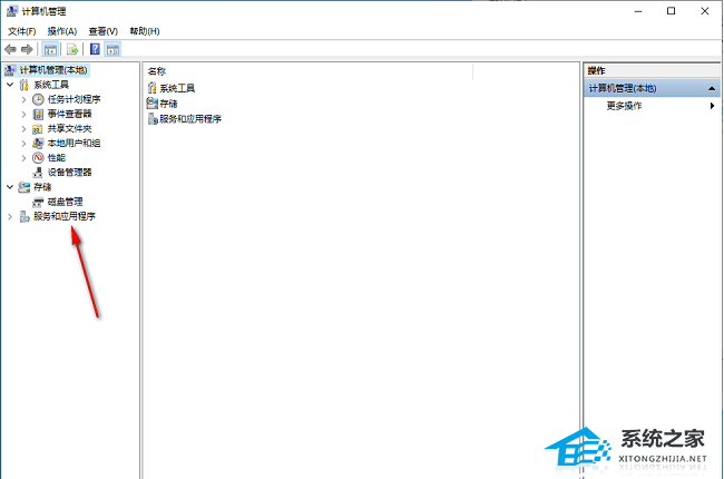 2. 进入到新的窗口界面后,点击左侧栏中的“服务和应用程序”。