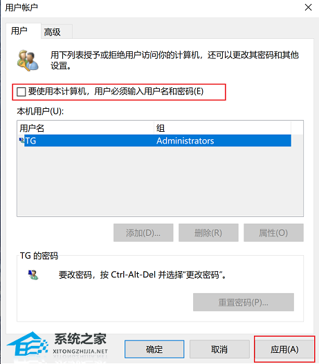 3. 取消勾选【要使用本计算机,用户必须输入用户名和密码】。