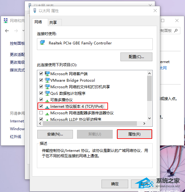 5. 选择“internet协议版本4(TCP/IPv4)”,点击“属性”。