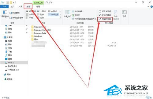 1. 进入此电脑,选择C盘进入,点击上方的【查看】,然后勾选【隐藏的项目】。
