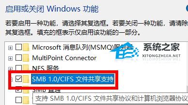 4. 勾选里面的“SMB1.0/CIFS 文件共享支持”。