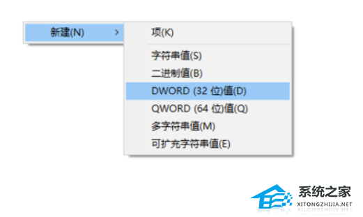 4. 在右侧空白处右键,选择新建→DWORD (32位) 值。
