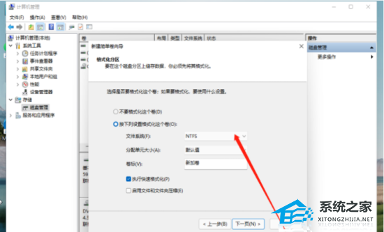 7. 磁盘格式要选择为NTFS,点击下一页等待分区完成即可。