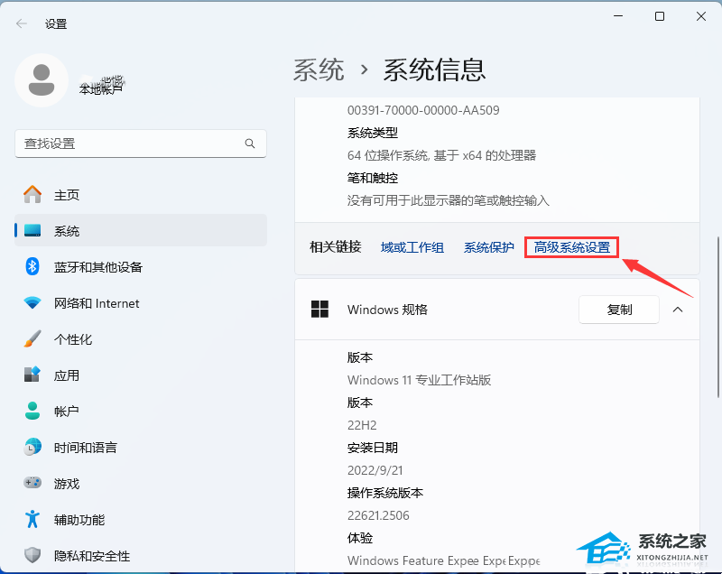 2. 接着,相关链接下,找到并点击【高级系统设置】;
