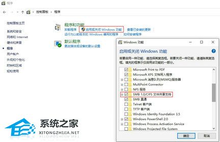 2. 勾选“SMB 1.0/CIFS”文件共享支持,之后系统会提示重启。