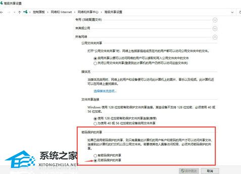 3. 关闭密码保护的共享。