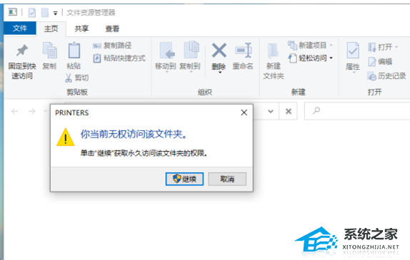 4. PRINTERS 提示:你当前无权访问该文件夹,单击“继续”获取永久访问该文件夹的权限;